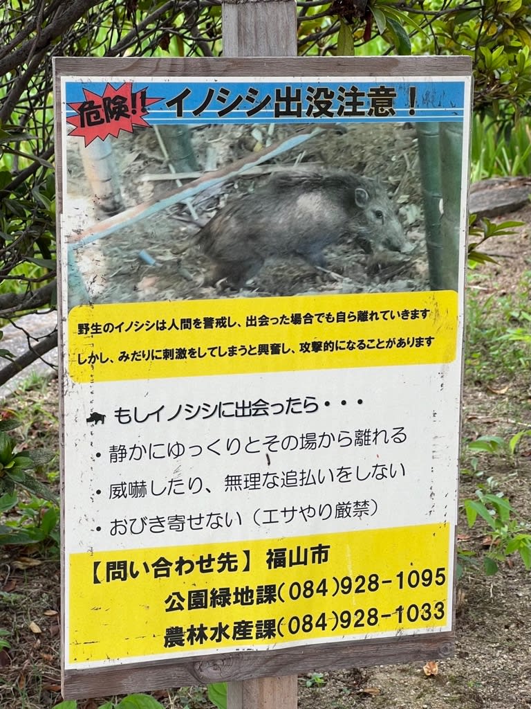猪が出没するらしい警告の看板が出ていました。